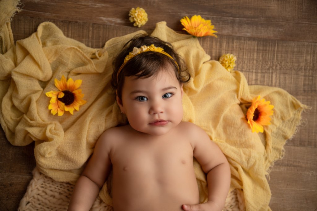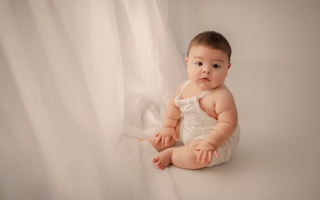 Durante estas sesiones cubriremos el crecimiento de tu bebé cada mes, desde 1 mes de nacido hasta su primer añito. Utilizando fondo liso de tela de un mismo tono cada mes. No incluye fotos familiares ni con pastel o decoración